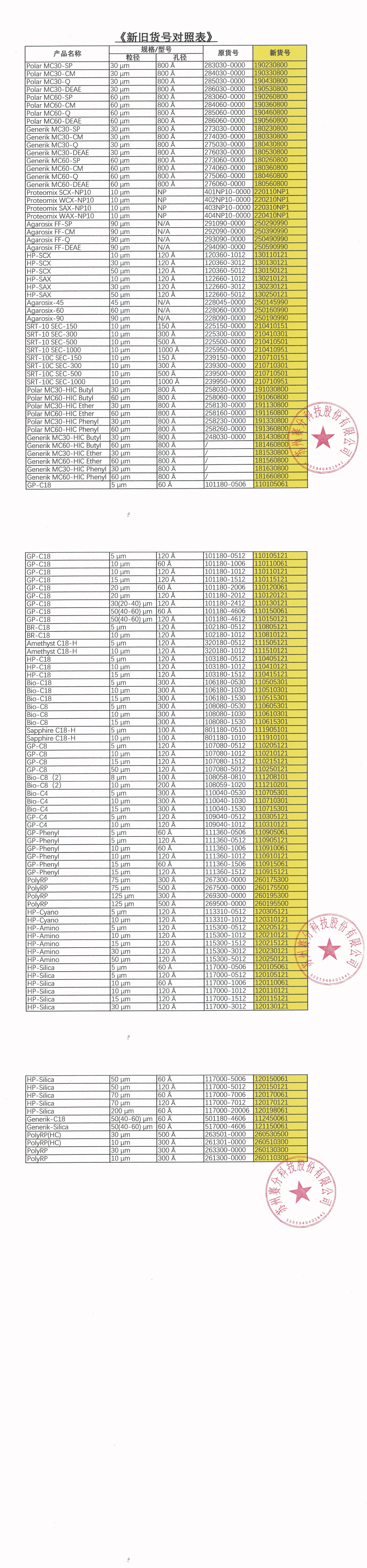 新旧货号对照表