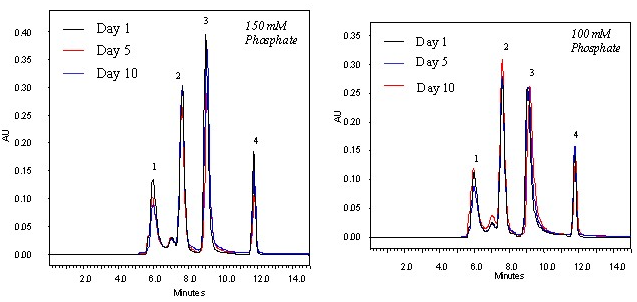 的流动相:150mM和100mM磷酸盐缓冲液, pH 7.0